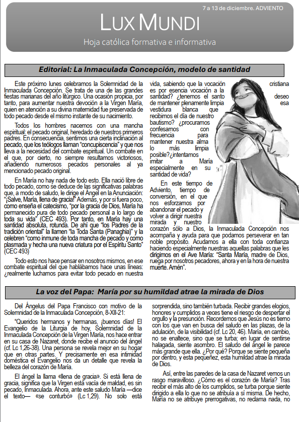 Evangelio del dia y puntos de meditación del lunes 8 de diciembre. Solemnidad de la Inmaculada Concepción